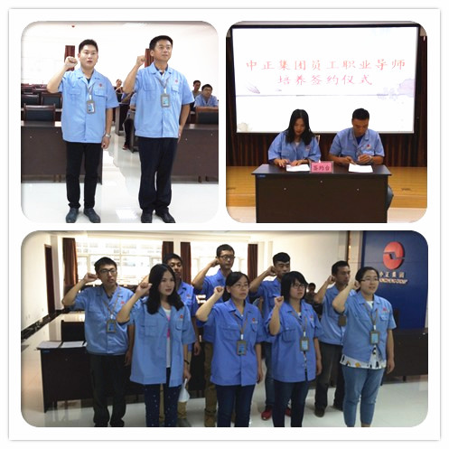 2015年9月8日上午8:30,集團(tuán)駐地舉辦了員工職業(yè)導(dǎo)師培養(yǎng)簽約儀式和干部員工宣誓儀式。工程公司3名新員工與導(dǎo)師正式簽約。集團(tuán)駐地9名干部員工面對司旗,莊嚴(yán)宣誓:忠誠集團(tuán)事業(yè),秉承集團(tuán)宗旨,弘揚集團(tuán)精神;團(tuán)結(jié)協(xié)作、努力進(jìn)?。蝗娜?,爭先創(chuàng)優(yōu);為興我中正,而竭盡全力。