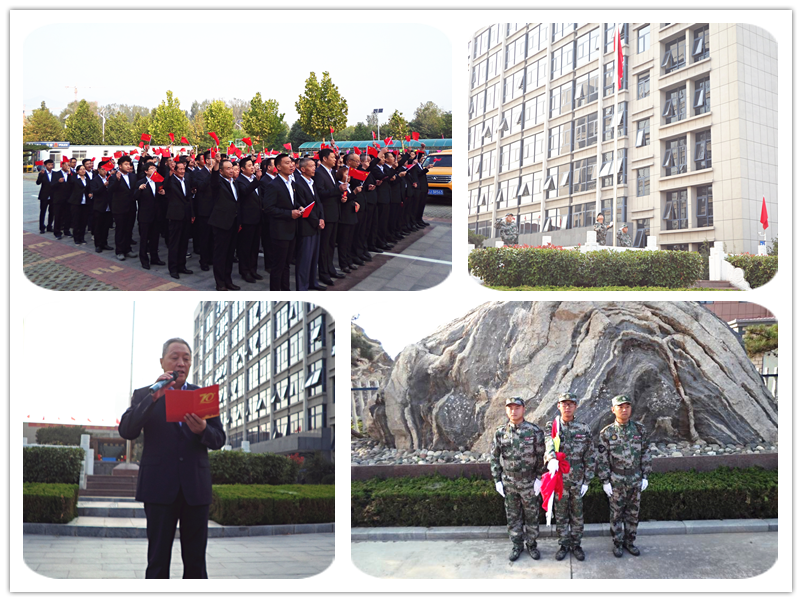 儀式上,集團(tuán)董事長李廣法發(fā)表莊嚴(yán)致辭。致辭中提到:“70年,路漫漫滄桑幾度,旗獵獵風(fēng)雨如磐;70年,中華兒女砥礪奮進(jìn)、眾志成城、攻堅克難,為民族復(fù)興奮斗;七十年,強(qiáng)國征程波瀾壯闊,華夏巨變舉世矚目。中華民族從未像今天這樣,似騰飛的巨龍,像咆哮的雄獅,以東方巨人的英姿讓世界刮目相看,贏得世界尊敬;中國人民從未像今天這樣幸福和美、揚眉吐氣,我們對國家和民族的前途充滿信心。”
